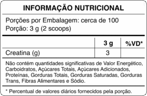 • 100% creatina monohidratada, sem aditivos